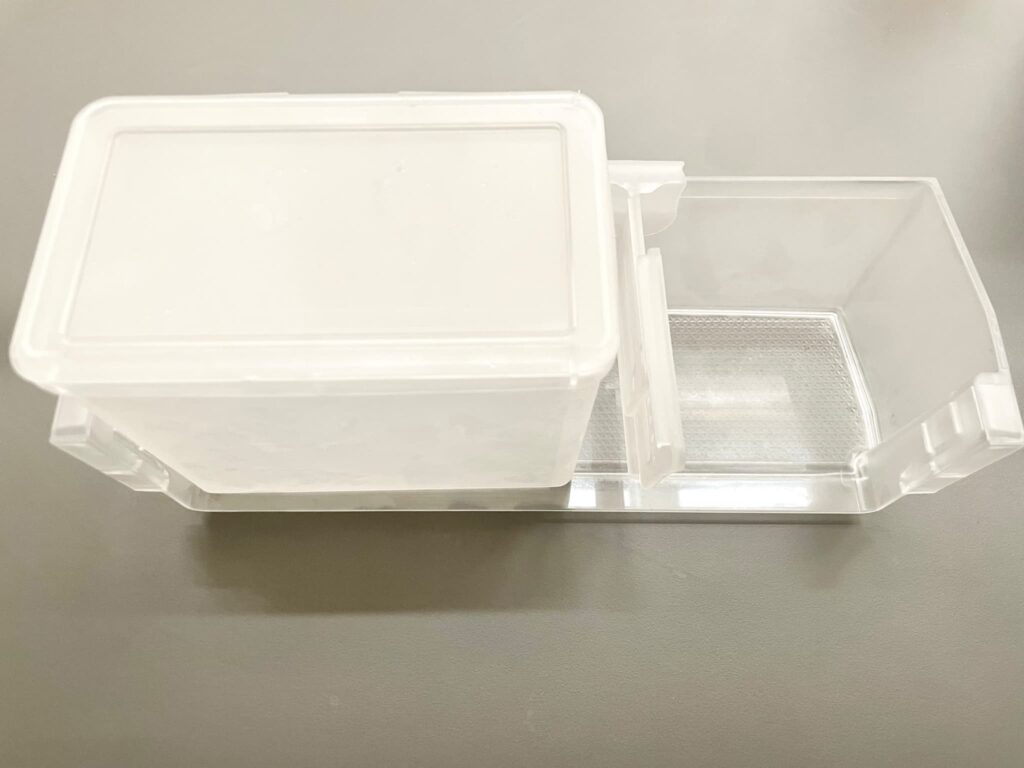 - ダイソー:中が見えるボックス深型、冷蔵庫便利ポケット仕切り(伸縮式)